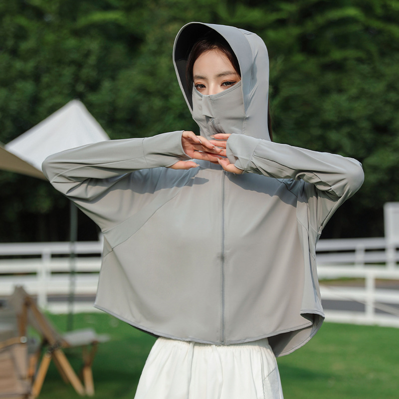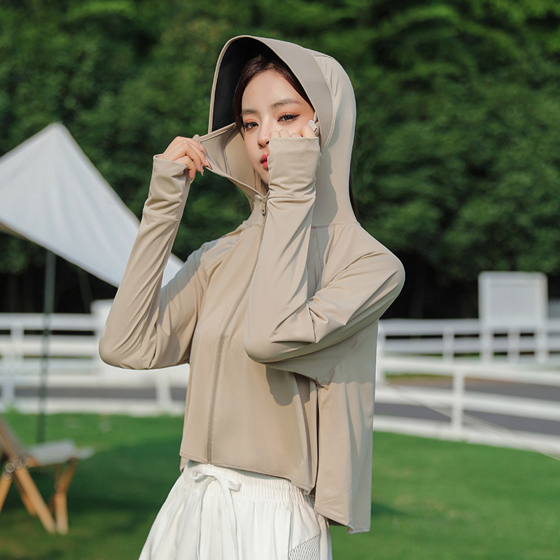 Áo Chống Nắng Nữ Dáng Ngắn Có Mũ Vành To Che Kín Đầu, Chất Liệu Làm Mát, Thoáng Khí, Chống Tia UV