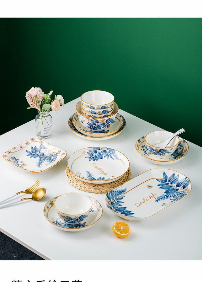 – Thiết kế cổ điển trong tông màu trắng & hoa văn xanh nổi bật vừa tạo sự tương phản về màu sắc, vừa mang nét trang nhã cổ điển cho không gian bàn ăn.