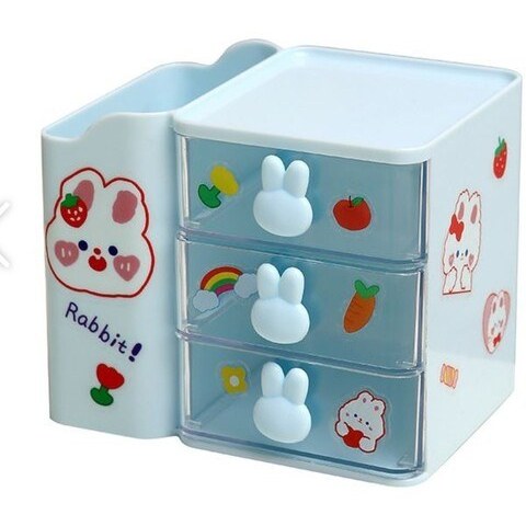 – Hộp thiết kế có 1 ống cắm bút, cọ trăng điểm…gắn liền với 1 tủ mini 3 tầng ngăn kéo trong suốt rất tiện lợi để cắm bút, chứa các vật dụng nhỏ
