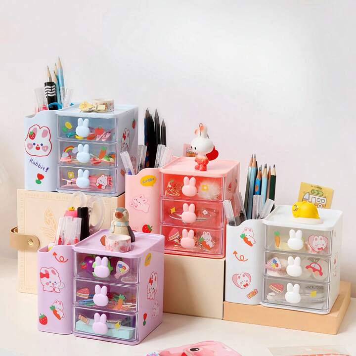 – Hộp thiết kế có 1 ống cắm bút, cọ trăng điểm…gắn liền với 1 tủ mini 3 tầng ngăn kéo trong suốt rất tiện lợi để cắm bút, chứa các vật dụng nhỏ