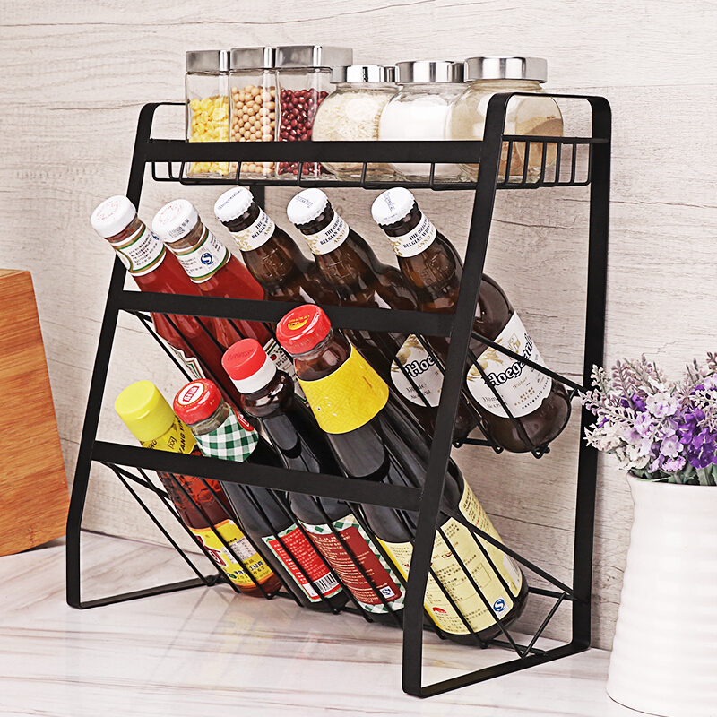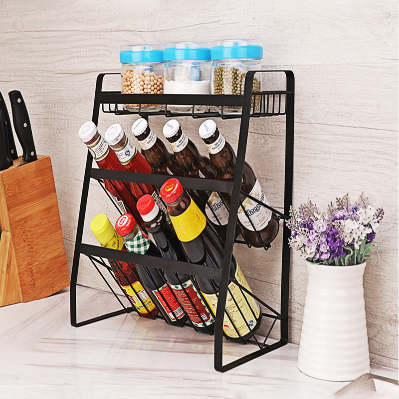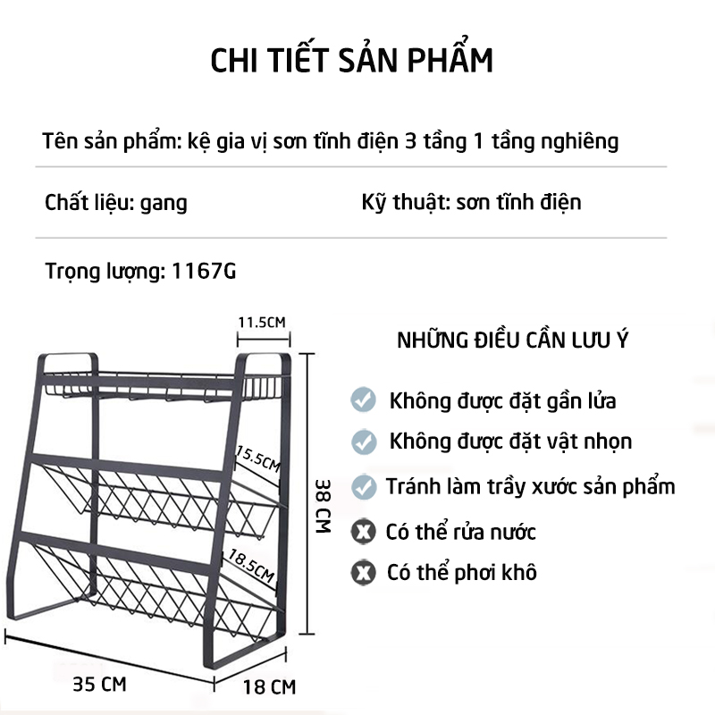 Kệ gia vị kiêm kệ đựng rượu sơn tĩnh điện 3 tầng 38*18*35cm