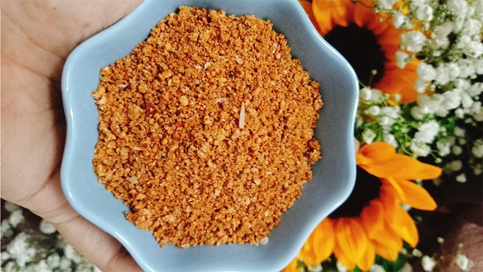 Đặc điểm Muối ớt đỏ Tây Ninh: Những hạt muối ớt nướng thơm phức, giòn rụm. Khách yêu sẽ cảm nhận được màu tự nhiên của trái ớt trên từng hạt muối.